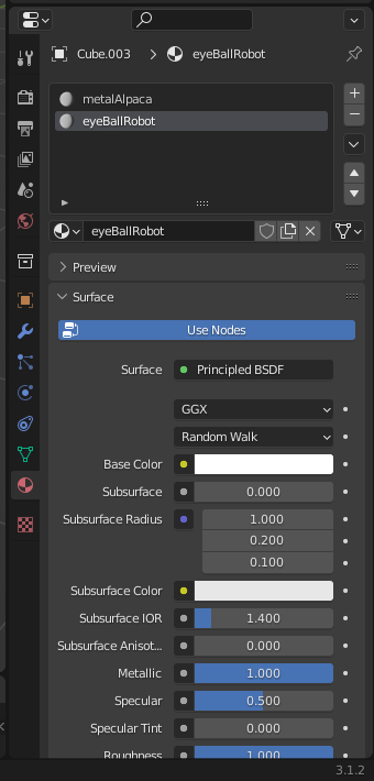 These work together to decide the colour of the material. RGB is the most commonly used colour system on computers. 0 means none of a particular colour, and 1.0 means as much of that colour as possible.