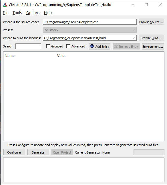 A symlink to your mod can be made for easy development, making it so you do not have to manually copy the folder to the game's mods folder every time you compile. The template can setup this symlink automatically, to do this the project should be configured with AUTO_GENERATE_SAPIENS_MOD_SYMLINK set to ON and with admin permissions. The symlink can also be manually made by running ni [YOUR MOD NAME] -i SymbolicLink -ta [PATH TO WHERE YOUR MOD COMPILES TO] in a powershell instance with admin privileges.